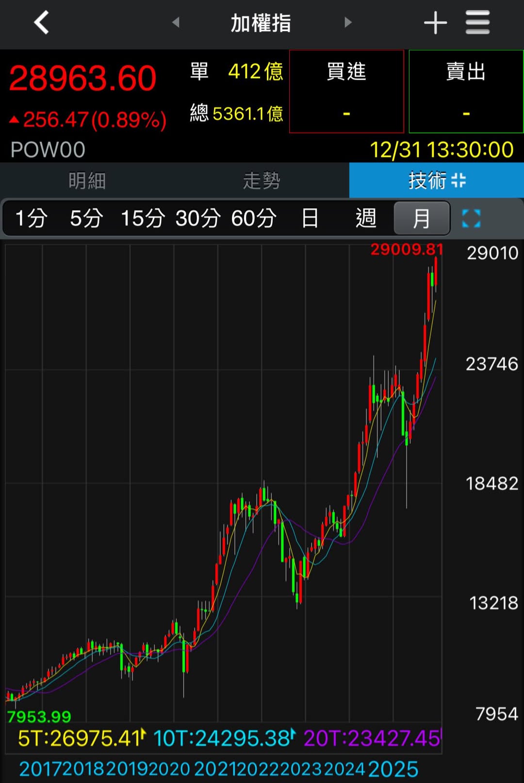 今天台股收紅盤,再度創新高29009.81,在2025年封關日畫下完美句點